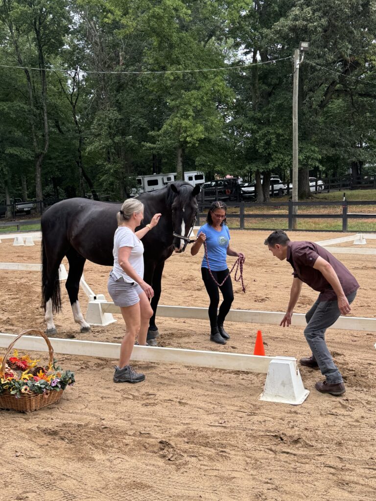 “Despite having ridden horses many times, I felt nervous and intimidated when I met my horse Jotspun. It became clear that Jotspun could sense my nervousness, and what surprised me was how much he wanted to help me succeed. By the end of the session, with support from my trusted team, I could even lead him through a maze while blindfolded. This exercise made me reflect on how often we have to lead without a clear vision and how crucial it is to rely on our teams for support. I walked away from this experience feeling empowered, fearless, and proud of the leadership skills I honed. I highly recommend Marietta Stalcup from Evolu Equine. Her leadership allowed for the best learning experience for me and the other participants. ”